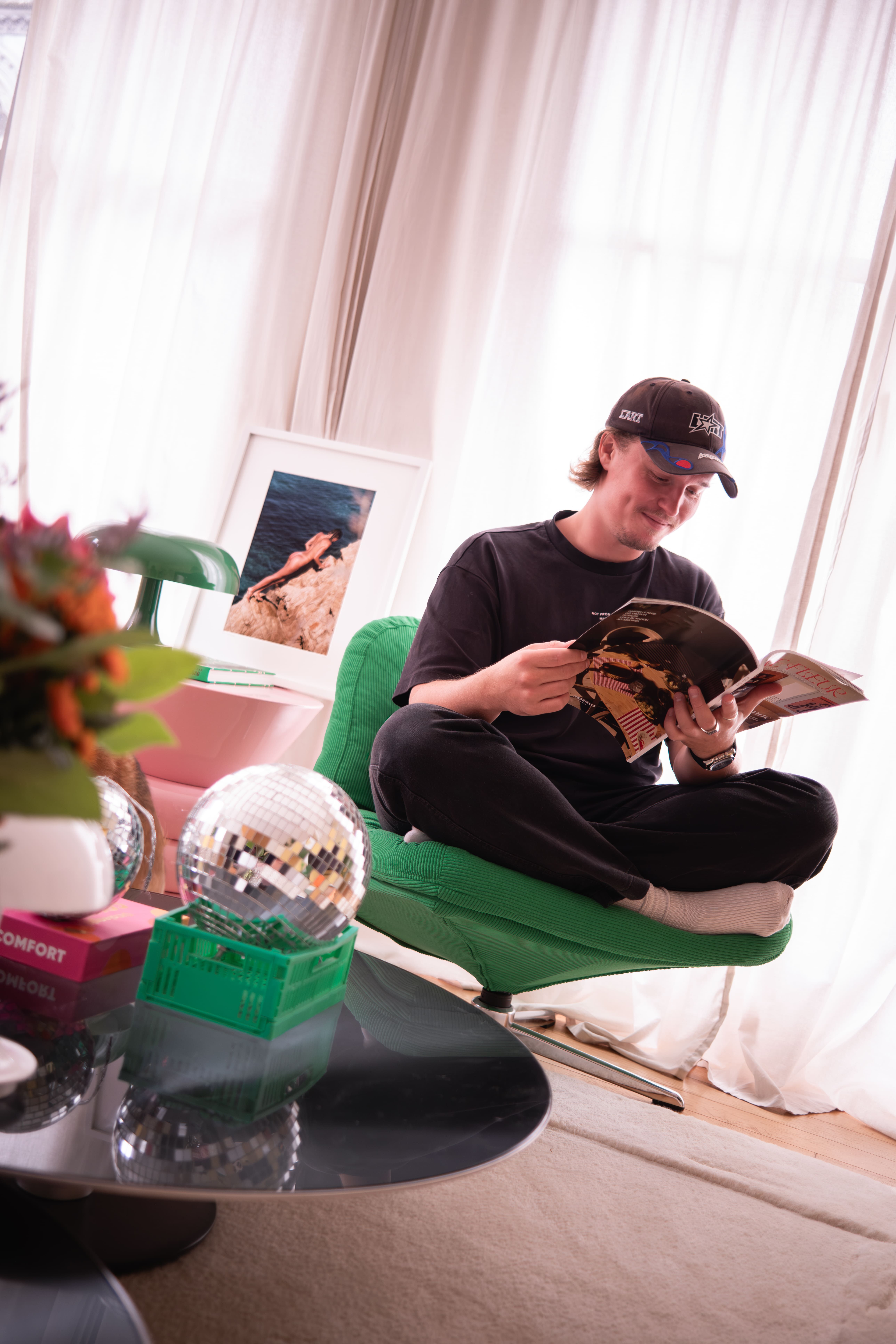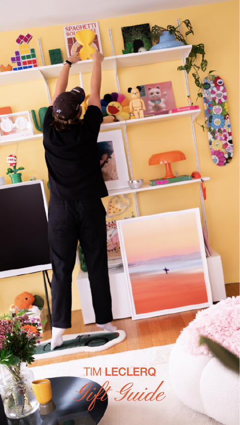Timothée cultivates a joyful and sun-drenched universe, where color and nostalgia meet a strong taste for design and staging. His decor, conceived as a maximalist playground, celebrates generous shapes, bold materials, and objects that tell a story. Photography naturally finds its place there: it extends this need for escape and travel through imagery. His selection of works, inspired by the Mediterranean and the French Riviera, blends Californian beaches, summer light, and retro softness. Each shot evokes a holiday memory, a sunny emotion, a moment suspended between dream and reality.