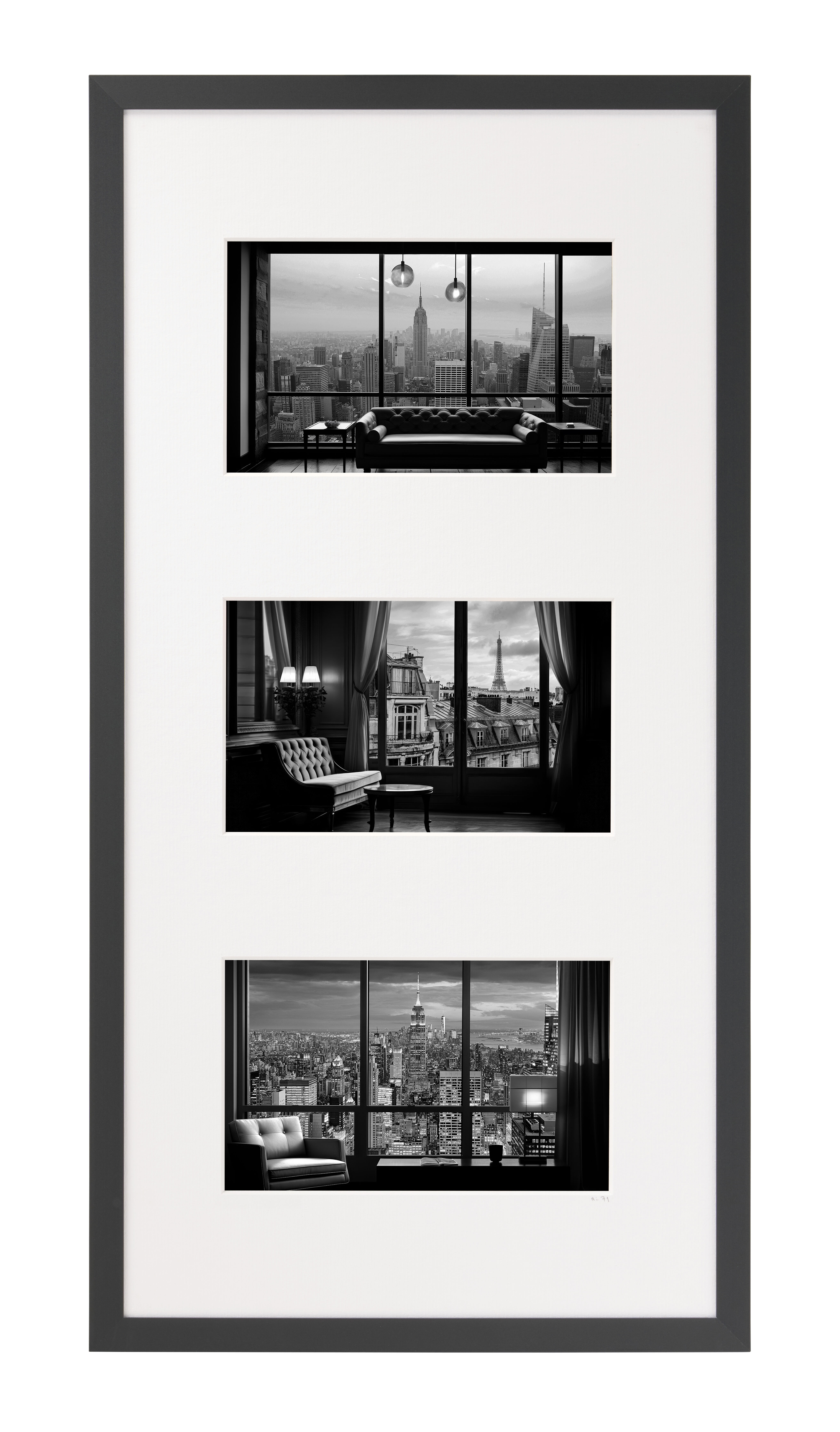 The Tryptique celebrates balance and composition through three photographs brought together in a single frame. Each image interacts with the others to create a captivating visual story — whether it evokes travel, architecture, or escape. Minimalist and chic, this format makes a strong artistic statement while maintaining a subtle decorative touch.